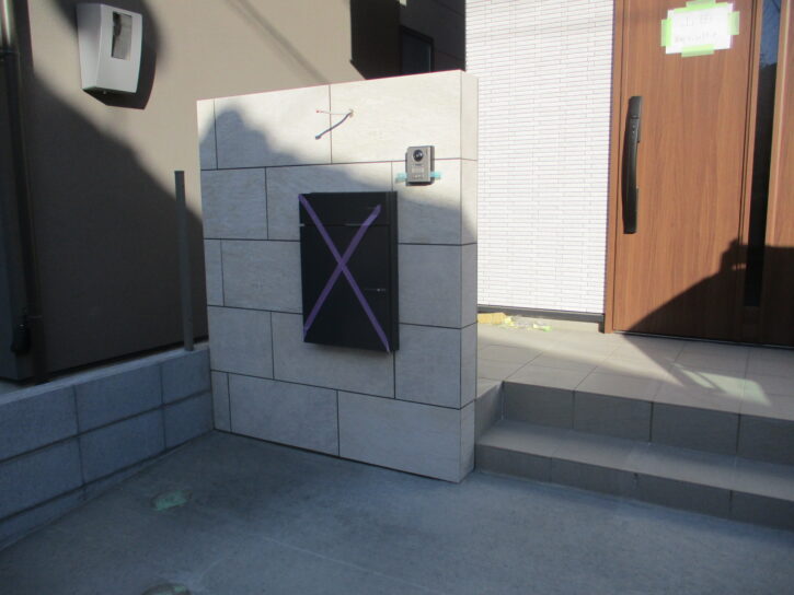 門柱にタイルを貼りました。
