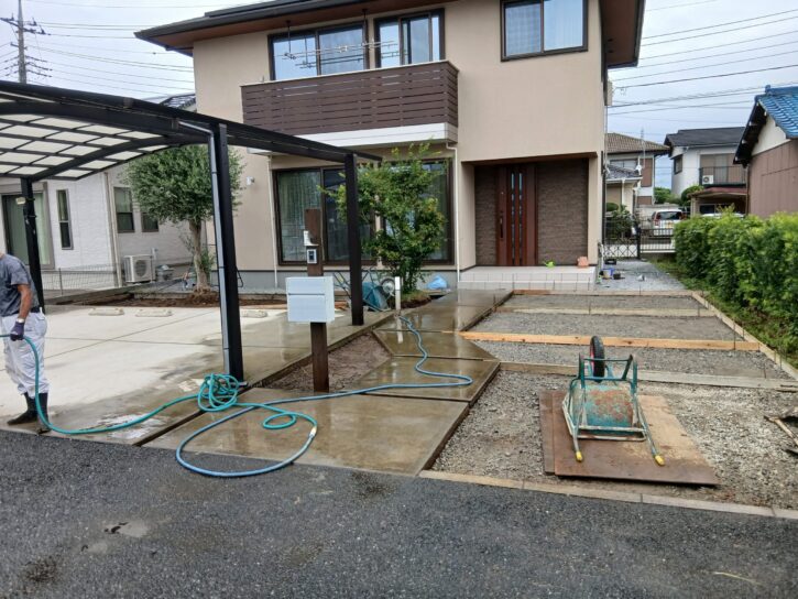 枠バラシを行い、スリットに白砕石を敷きました。これで工事が完成しました。