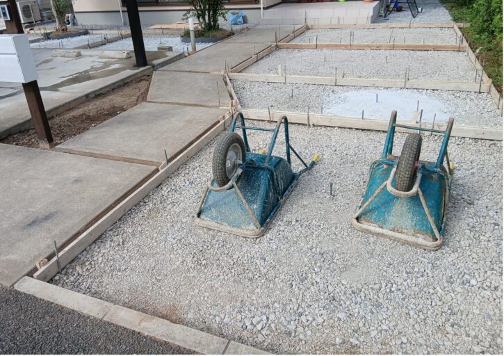 鋤取りを行いました。また、砕石敷きや木枠を並べています。