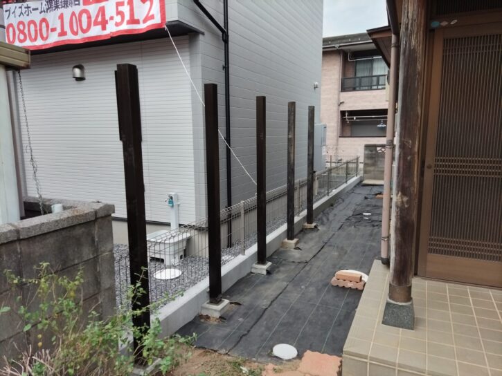現場レポート ■埼玉県鴻巣市外構リフォーム工事 1.フェンス柱(2025年9月25日) 独立基礎を設置しました。その後、柱を立てています。 2.フェンス本体取付(2025年9月26日) フェンスの本体を取り付けました。これで工事が完成しました。 次の記事へ 現場レポートの一覧へ戻る エクステリアの一覧へ戻る 前の記事へ