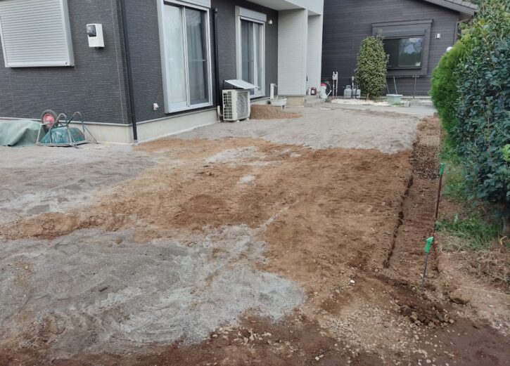 現場レポート ■埼玉県毛呂山町外構リフォーム工事 1.人工芝下地(2025年11月8日) 鋤取りを行いました。また、人工芝の下地を作っています。 現場レポートの一覧へ戻る エクステリアの一覧へ戻る 前の記事へ