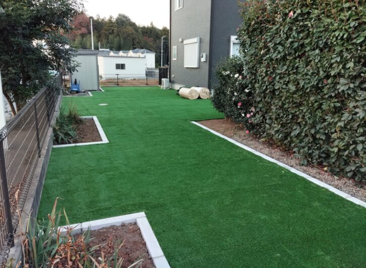 鋤取りを行いました。また、人工芝の下地を作っています。 -