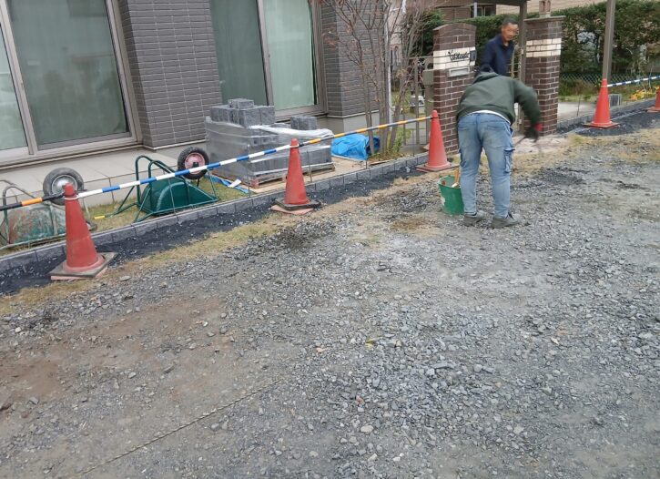 根付けを行いました。また、砕石を敷いています。 -