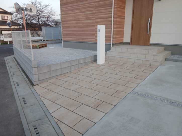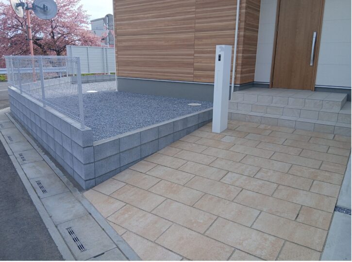 アプローチにインターロッキングを敷きました。また、フェンスの取付を行いました。 -