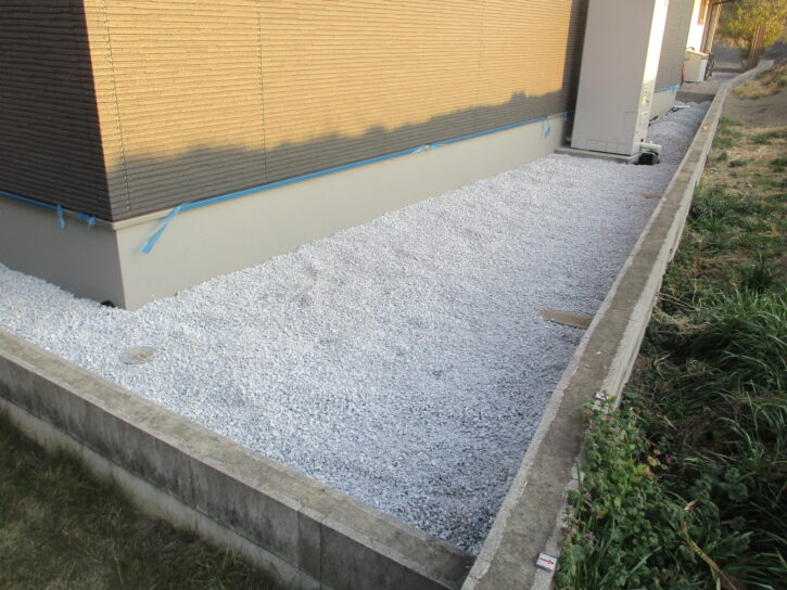 犬走りに白砕石を敷いています。